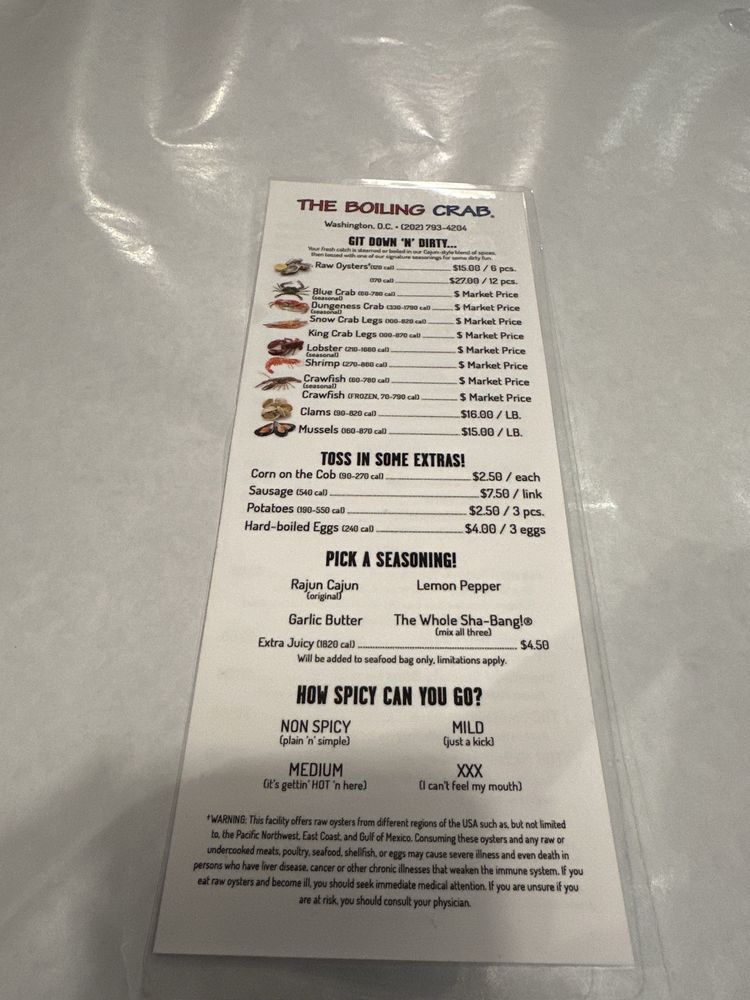 The Boiling Crab Washington Menu (Update 2025)